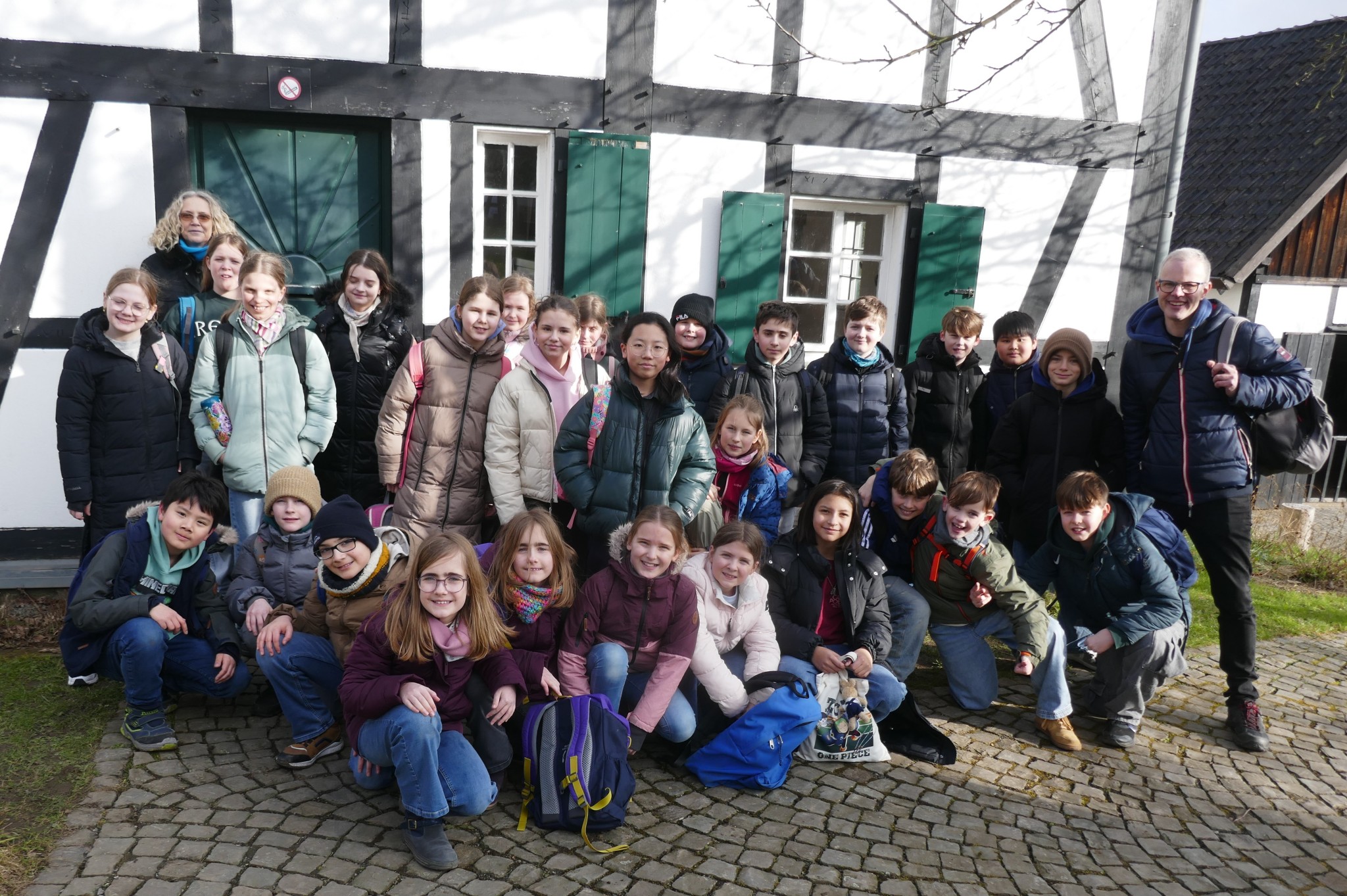 Wir, die Kultur-Scout Klasse 5c des Carl Friedrich von Weizsäcker-Gymnasiums, Ratingen, besuchten am 05.02.26 mit Frau Ehrhard und Herrn Weigandt das Bergische Museum für Bergbau, Handwerk und Gewerbe in Bergisch Gladbach. Dieses Museum zeigt bereits seit 1928, wie Menschen in der Region vor rund 150 Jahren lebten und arbeiteten. Bevor wir auf Zeitreise gingen und in Gruppen in die Rollen von Bergmannsvätern, Bergmannsmüttern und Bergmannskindern schlüpften, machten wir einen Steinvergleich und lernten, dass der Stein aus Zink schwerer als der kleinere Stein aus Blei war. Los ging es unter Tage: Im Erzbergbau bestaunten wir eine Maschine, die mit Hilfe einer Pumpe Wasser aufsaugen konnte, damit die Bergmänner einfacher die Steine herausschlagen konnten. Loren halfen, das Gestein zu transportieren. Zink, das aus Erzen gewonnen wird, wurde schon damals beispielsweise in Wannen, Kannen und Trichtern verarbeitet.
